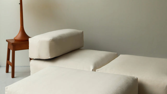 Le Lounge Pillow, c’est un accoudoir, un coussin, un élément polyvalent. Utilisez-le comme module latéral, séparateur de canapé ou directement au sol – sa base antidérapante le garde bien en place.